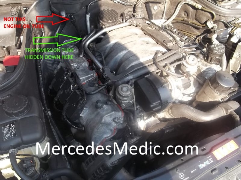 Instructions on how to check transmission fluid on a Mercedes Benz