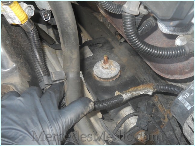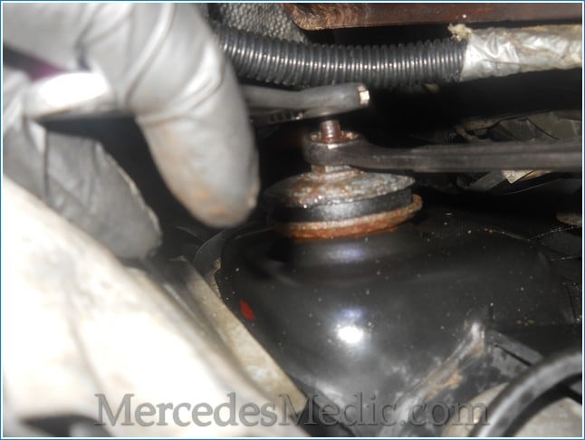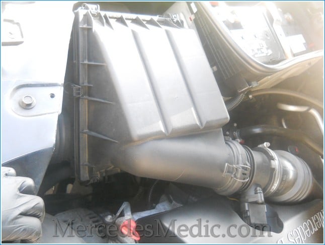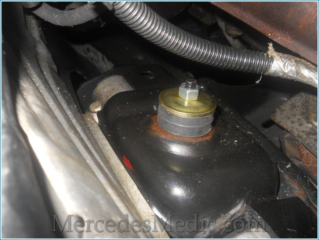 - You don’t need to raise the car. When you do this, it needs to be with the wheel on the round. Once you remove the intake air housing, you will see the nut, as shown below.
