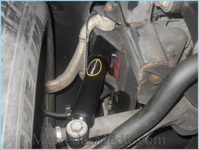 Replacing the front shock absorbers is one of the easiest tasks you can tackle on your ML. These instructions apply to 1998-2005 ML320 ML430 ML350 ML500 W163. Below you will find step-by-step instructions, a video at the end of the article, related part numbers, plus torque specifications. The shocks are relatively inexpensive and will improve the ride quality dramatically. No more bouncing over the place or floating like a boat on the highway. Sachs brand is one of the best suspension brands. Their shocks usually sell for over $500 per set. The best price we could find for a set of two was $350 on Amazon; see link here.