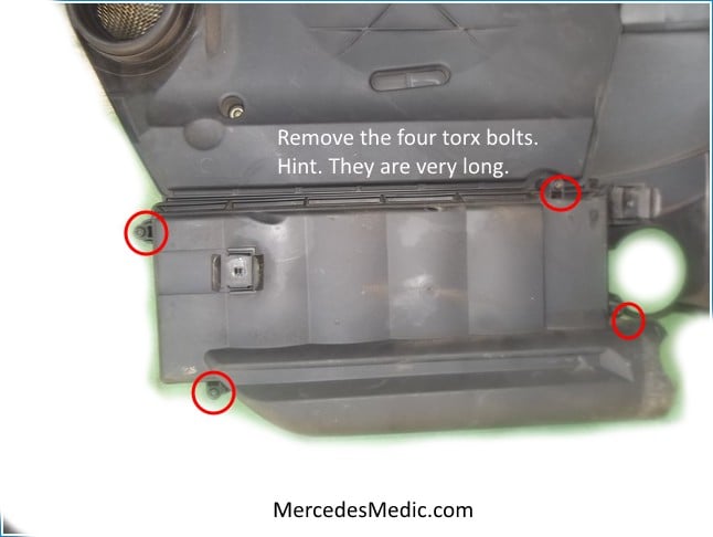 The engine air filter should be replaced every 10,000 miles. There are two air filters in your Mercedes-Benz. They are both on the engine cover, which you can see in the pictures below. Replacement is easy if you have a Torx tool set like the one below. The whole job only takes about 30 minutes max. These instructions apply to most Mercedes-Benz cars from 2000 to 2011. You can see the applications list at the end of the article. You will find step-by-step instructions on changing the engine air filters and a video here.