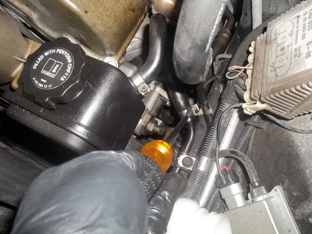 Fill it with the correct OEM power steering fluid, or use Febi Bilstein Power Steering Fluid.