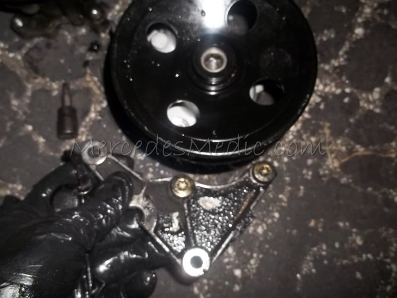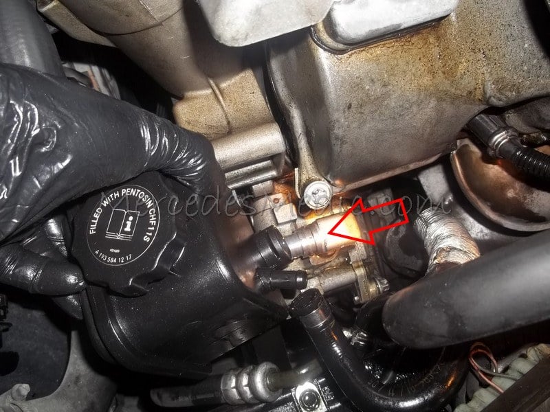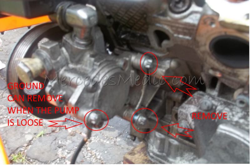 Instructions on replacing the power steering pump or the power steering reservoir on Mercedes Benz V6 and V8 cylinder engines, such as the M112 and M113 engines. Symptoms of Power Steering Failure are: