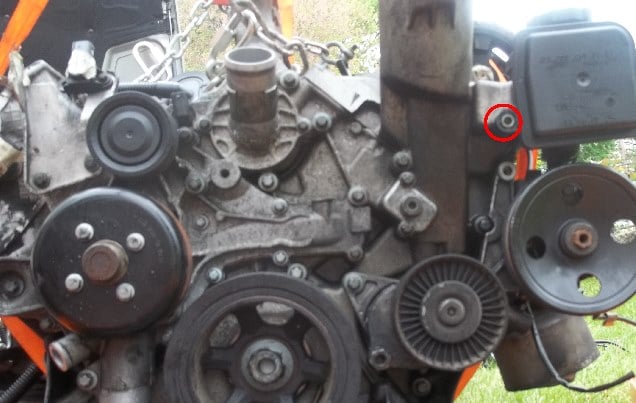 NOTE: In step 10. A ground wire may also be connected to the power steering pump. If you are having difficulty getting to that bolt, don’t bother taking that off until you have the power steering pump lose. Once the power steering pump bolts are loose, you can move the PS pump and loosen the ground bolt.