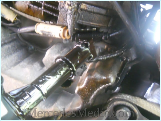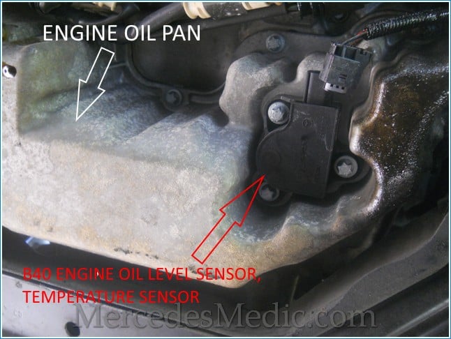 Below, you will find step-by-step instructions with pictures on removing and installing a new engine oil sensor on a Mercedes Benz engine. Part numbers related to the oil level sensor are shown below; there could be more. The oil level sensor (B40) aims to measure the oil level, the oil temperature, and the oil quality. This E320 showed a “Reduce oil level” warning in the instrument cluster even though the oil level was correct. Once we replaced the oil level sensor, the error no longer displayed on our dash. These instructions apply to several Mercedes Benz models that have the V6 or V8 engines in them. Below is a list of models to which these instructions apply: