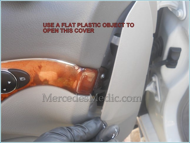 - Use a flat plastic object (or flat-head screwdriver) to remove the cover near the door lining.Â
