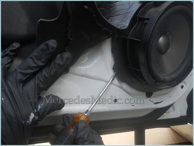 - Remove the door foil around the speaker. You don’t need to remove all of the door foil.