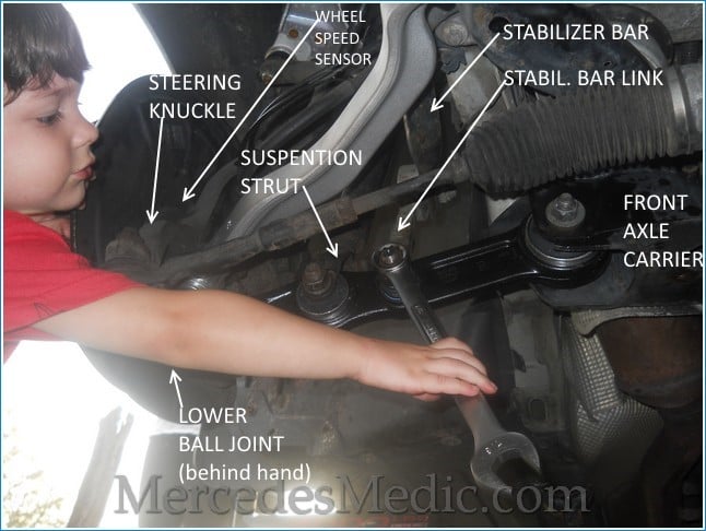 Step-by-step DIY instructions with pictures on replacing the Front Lower (Rearward) Control Arms with Bushings. These instructions apply to the E and CLS class, rear-wheel drive only.  Parts needed: Left lower control arm (RWD only, not 4Matic) 2113308207 for Mercedes W211 W219 W320 E350 CLS55 Control Arm Right Front Lower OEM LEMFOERDER …