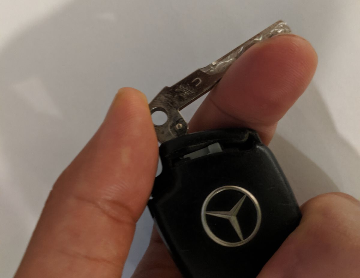 - Remove the emergency key from your old Mercedes key.