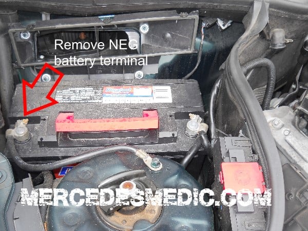 We recommend that you disconnect the battery before you start work. The battery is located in one of these three places:  the engine bay, under the rear seat, or the trunk. Disconnect the negative battery cable only; no need to disconnect both terminals.